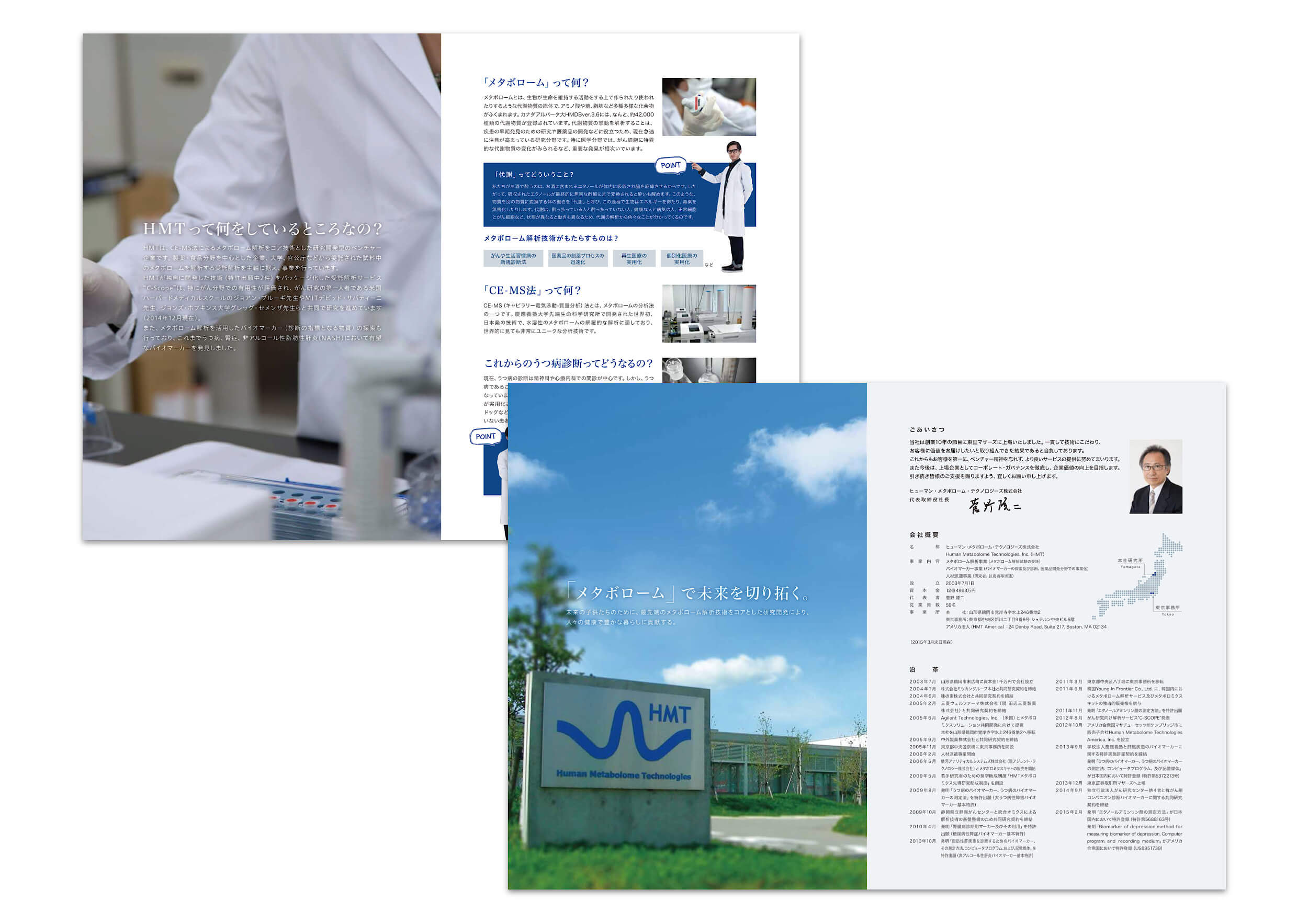 それぞれの事業がどのようなサービスを提供し、どのように研究開発や医療の未来を支えているのか。また、HMTが見据える未来像と社会への貢献、その想いを丁寧に描き出し、同社ならではの技術的優位性とビジョンが自然と伝わる構成となっています。
